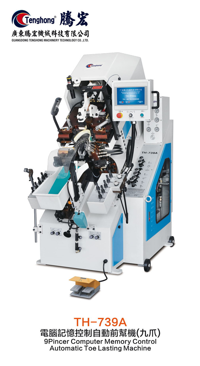 前幫機(jī)的處理的方法是首先在加熱狀態(tài)把噴膠器從繃幫座上拆下來,清除表面上的熱熔膠,取中號(hào)鞋楦的底盤檢測涂膠器上表面,標(biāo)出接觸不良的部位,并修磨出與鞋楦底盤相同的弧面,還應(yīng)使噴膠器邊緣略小于鞋楦楞邊。同時(shí),把已堵塞進(jìn)噴膠孔或噴膠槽中的焦燒雜質(zhì)清除干凈。前幫機(jī)把修磨合格的噴膠器重新裝到繃幫座上,再調(diào)整輸膠量至最大量,噴膠不均勻的故障即可清除。